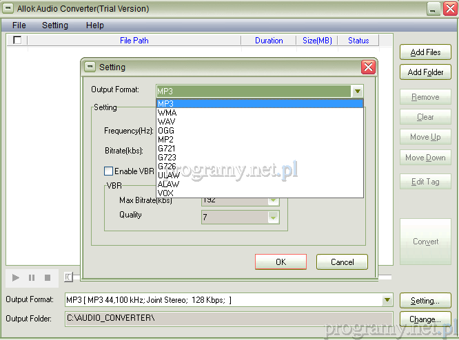 Avec Add Audio au logiciel vidéo, vous pouvez ajouter l'audio à partir d'un fichier MP3 ou WAV à divers formats vidéo tels que WMV, AVI, MOV, MPG ou FLV. Le programme garantit que la qualité du flux audio reste intacte lorsqu'elle est ajoutée à la vidéo.